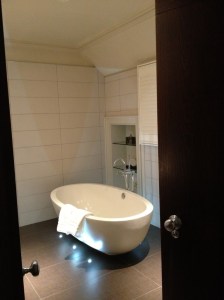 The welcome was fabulous, very warm and welcoming. We had flown up from London on a Friday night so were tired and just went to bed – but it was clear that we could have had anything. The restaurant shares the same front door with the hotel.